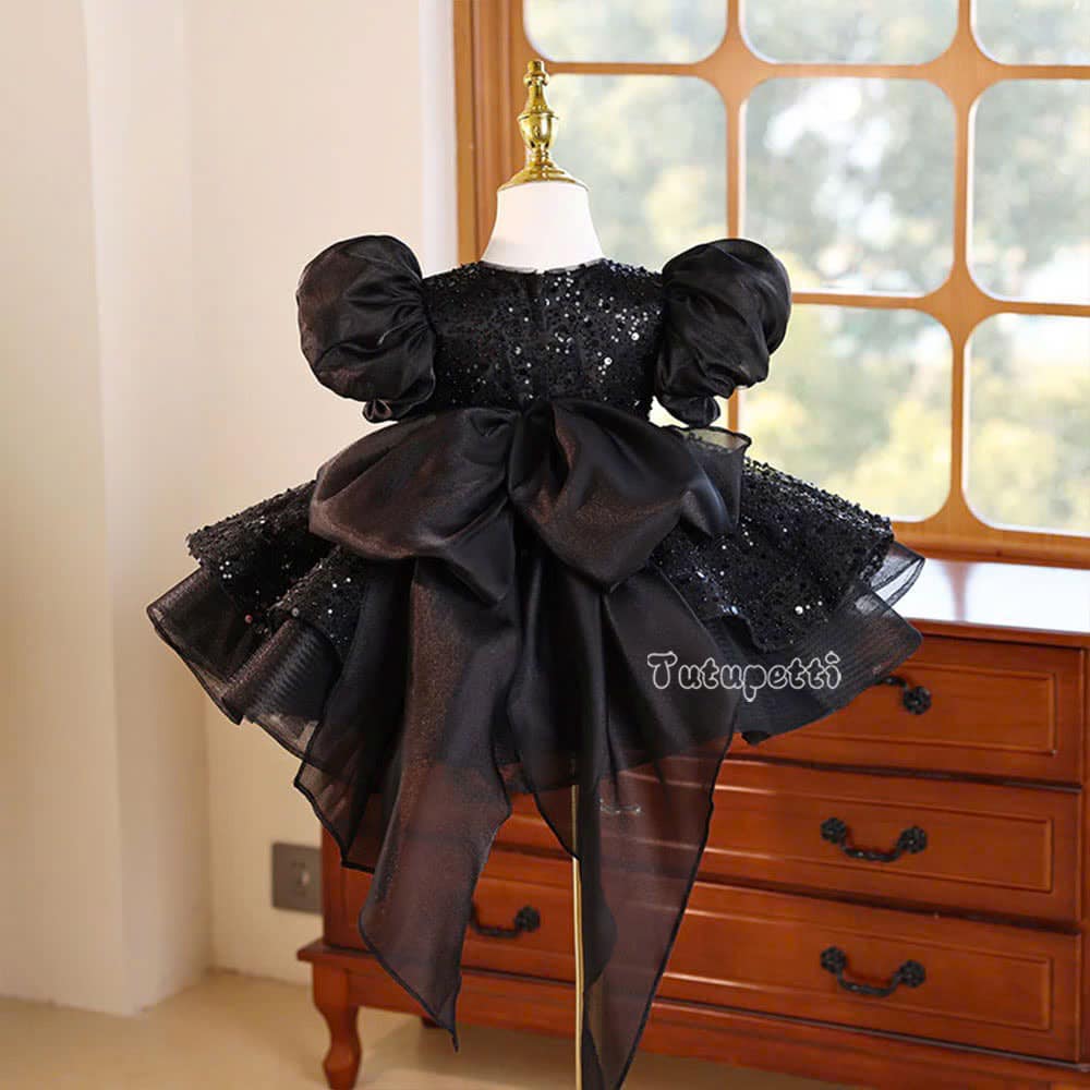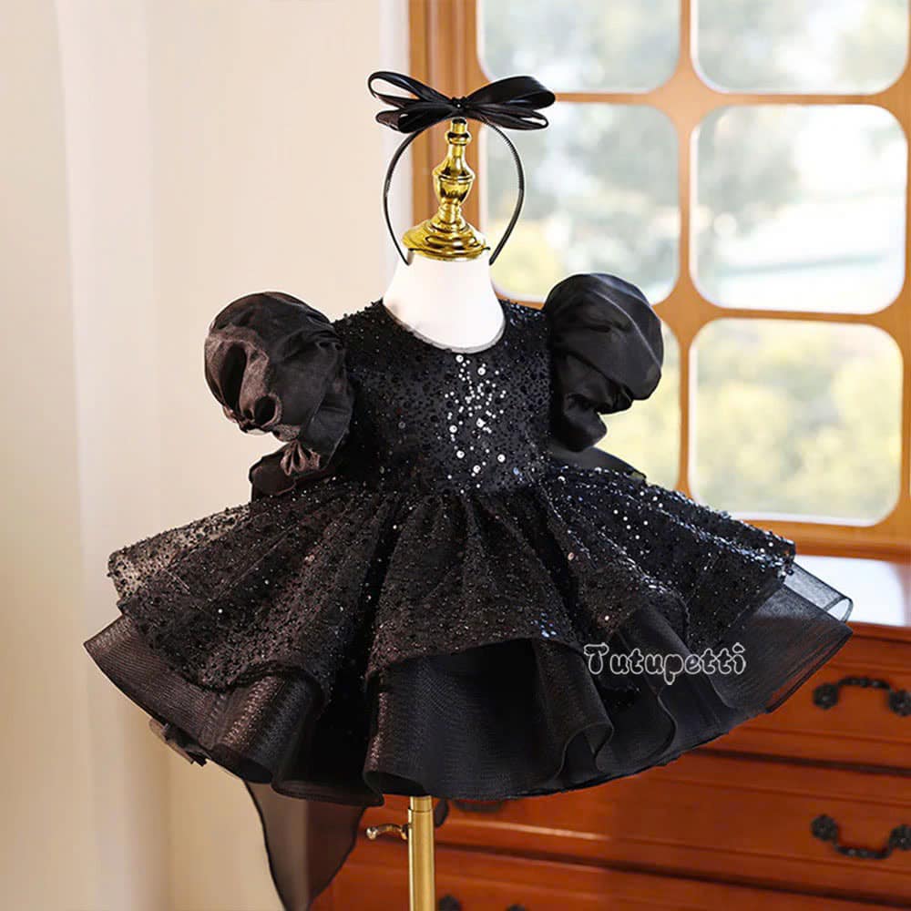 Let your little star shine in our Black Sequin Evening Gown. The mysterious pure black hue perfectly complements the exquisite sparkling sequins meticulously adorned throughout the dress, creating a breathtaking light-catching effect that draws every eye. This luxurious evening gown features a carefully tailored silhouette that enhances your child’s graceful and elegant charm. Crafted from premium, soft, and breathable fabric, it ensures your little one feels supremely comfortable and confident, allowing her to move and play freely throughout the party without any discomfort.