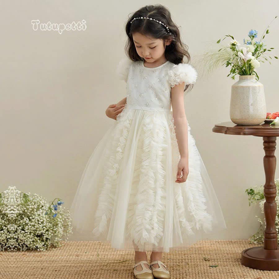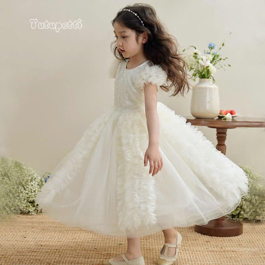 Let your little one shine like a true princess in our Elegant White Evening Gown. With its pure white hue, this dress radiates timeless grace and innocence. The flowing, long design combined with a luxurious silhouette creates an ethereal and regal look, as if she stepped right out of a fairytale. Every detail is meticulously crafted, from the stitching to the fabric, ensuring a flawless appearance. Made from premium, soft, and breathable material, it guarantees your child remains comfortable and confident, allowing her to move freely and enjoy the party.