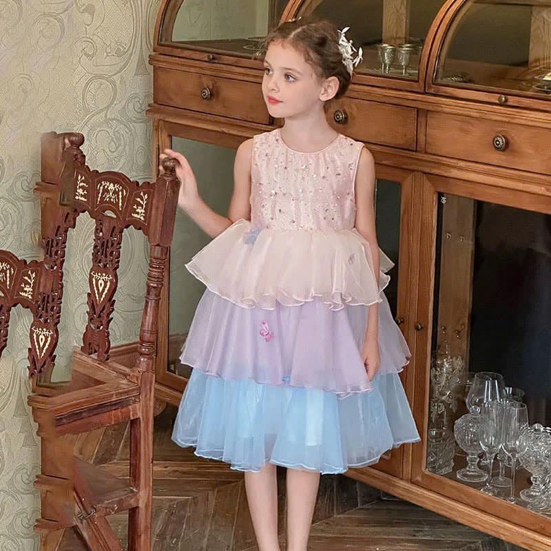 Let your little one’s fairytale dreams come true with our Pink Sequin Tiered Princess Dress! Designed for girls, this gown perfectly blends sweet charm with luxurious elegance, ensuring she’ll be the center of attention at any party, event, or photoshoot.